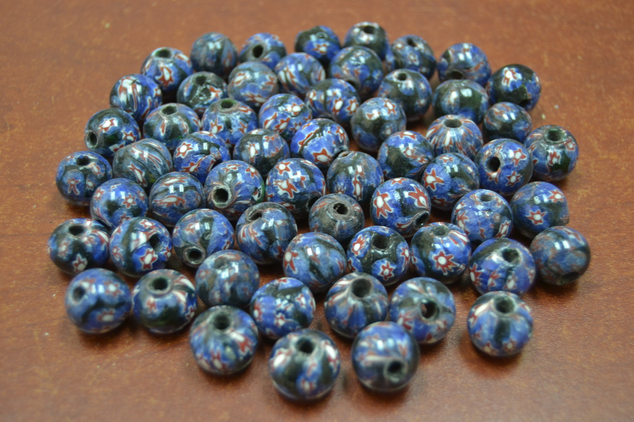 - 100 Pcs Handmade Blue Round Glass Beading Beads 12mm