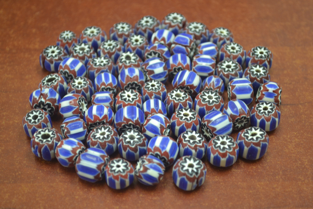 - 100 Pcs Handmade Blue Stripe Chevron Glass Beads