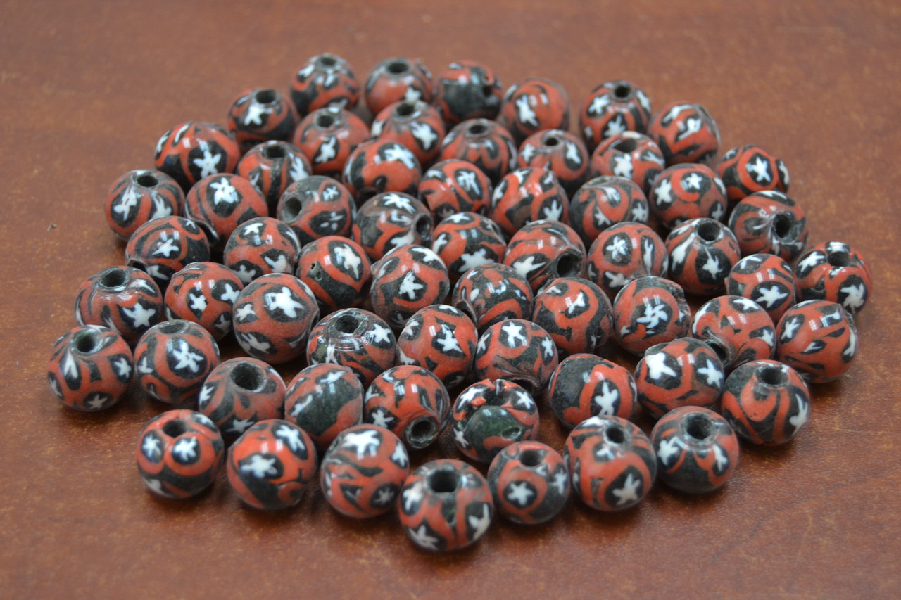 - 100 Pcs Handmade Red Black Round Glass Beading Beads 12mm