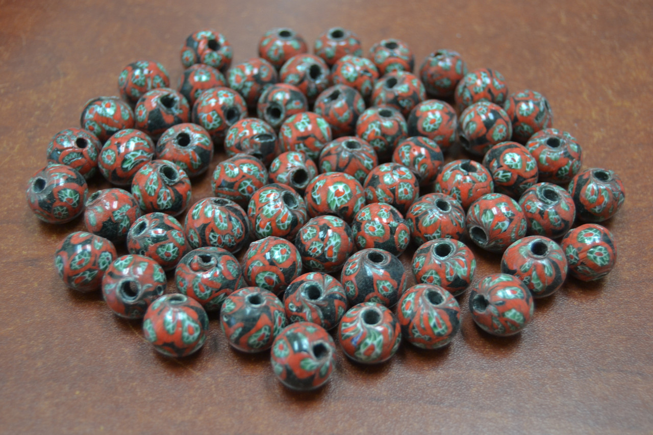 - 100 Pcs Handmade Red Round Glass Beading Beads 12mm