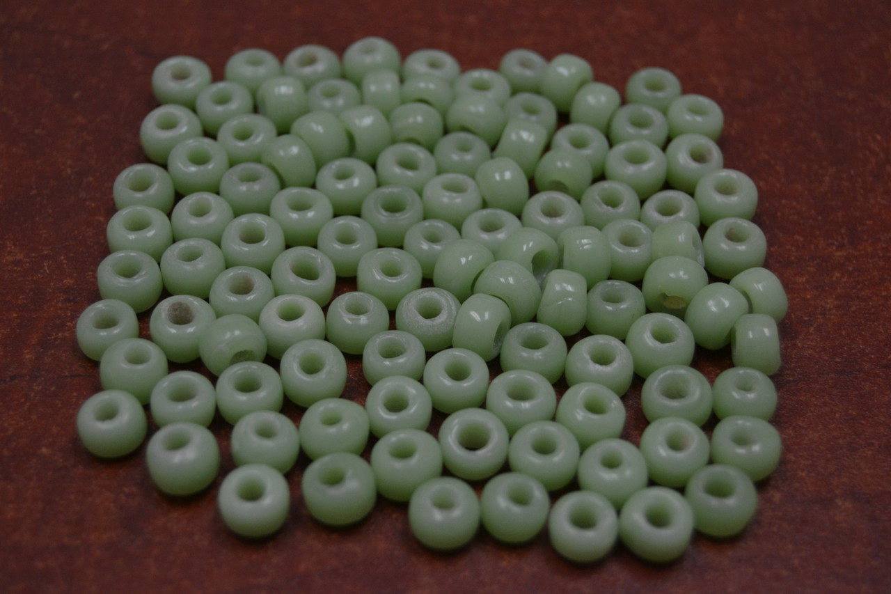 - 100 Pcs Light Green Pony Crow Glass Beads