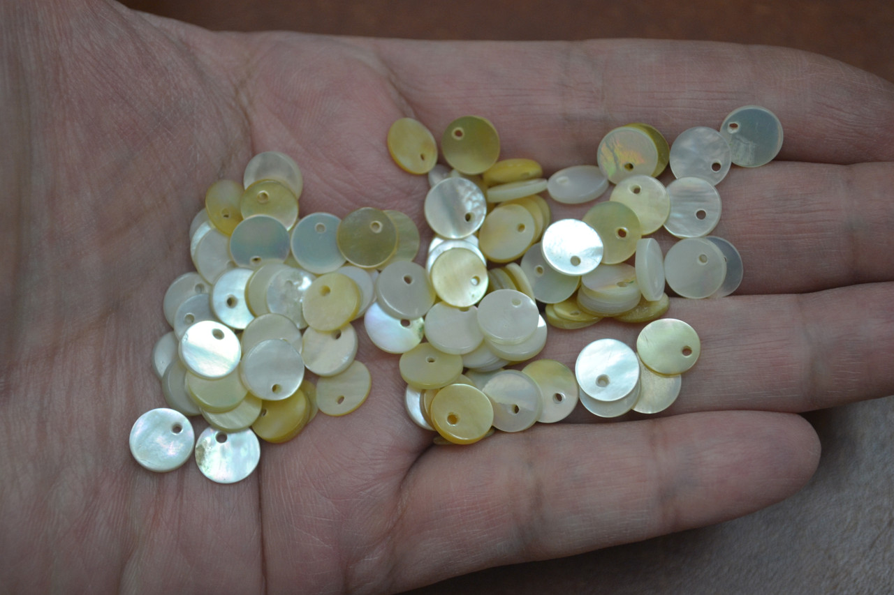 - 100 Pcs Round Golden Mother of Pearl Blank Shell Charms 8mm