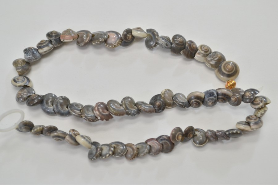 These are brown nautilus shell beads. It is drilled with 1mm hole and put in 16 inch string.