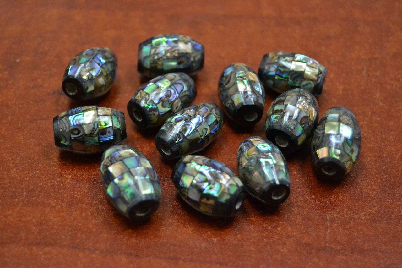 - 12 Pcs Abalone Shell Mosaic Tube Beads 20mm
