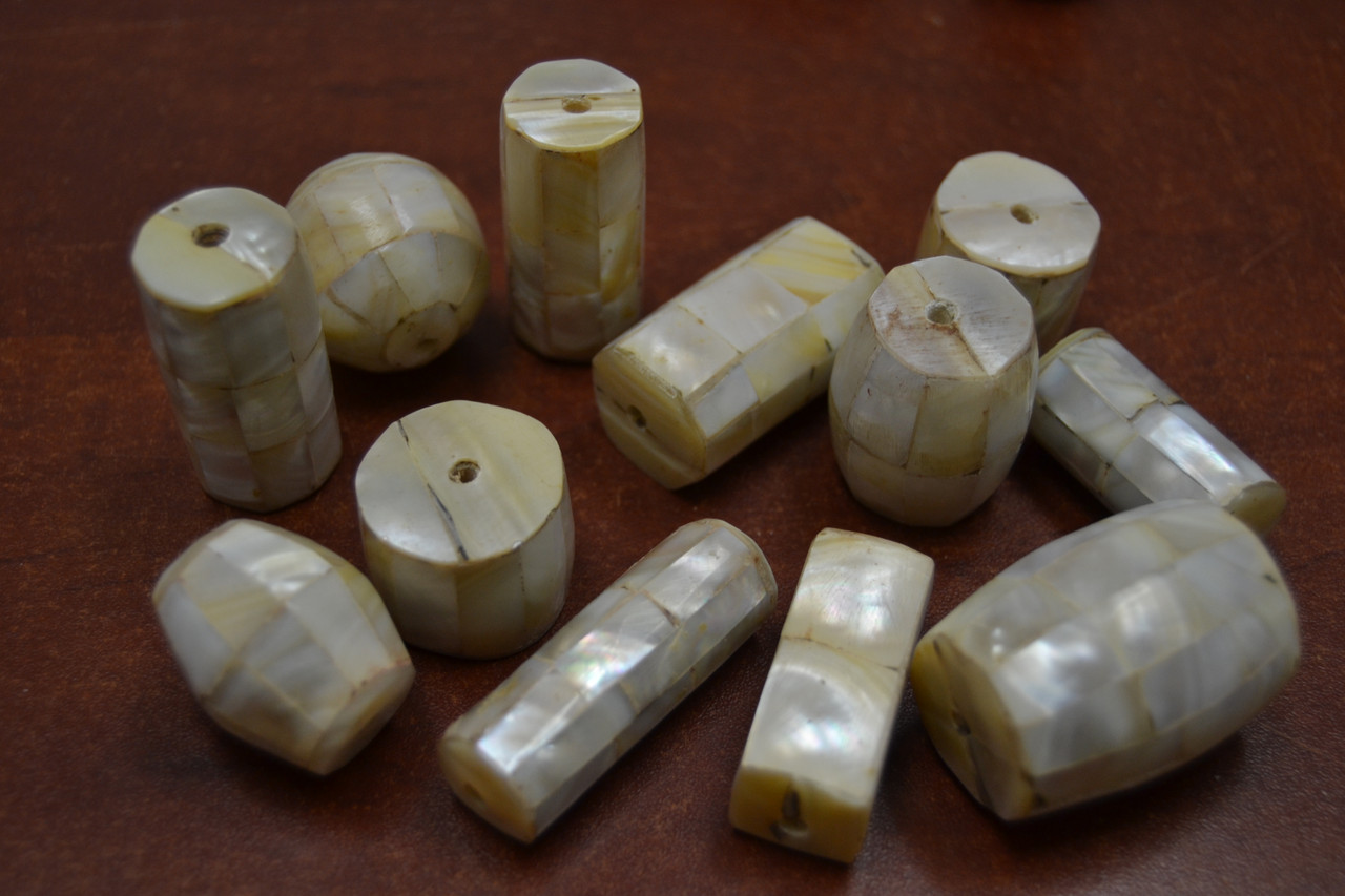 - 12 Pcs Assort Mother of Pearl Shell Wood Beads