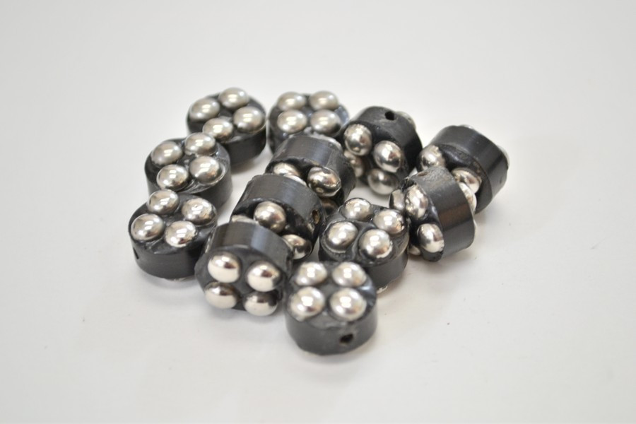 It is handmade of silver plated metal wood beads. Nice additional to craft or jewelry making.