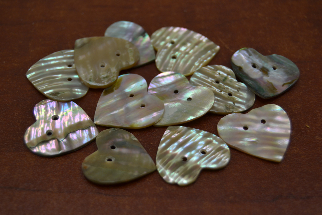 - 12 Pcs Heart Abalone Shell Sewing Two Hole Buttons 1 1/4"