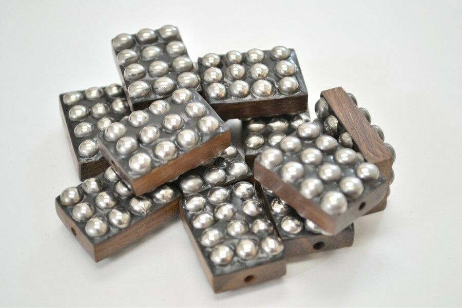 - 12 Pcs Rectangle Handmade Silver Plated Metal Beading Beads