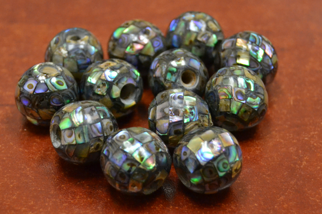 - 12 Pcs Round Abalone Shell Mosaic Beads 15mm