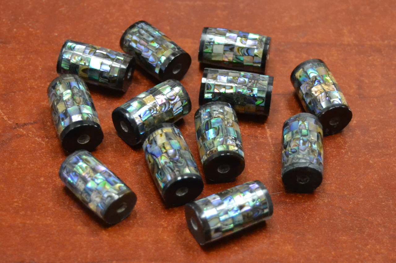 These are beautiful handmade shell beads. It is wood bead and inlay with abalone shell pieces.