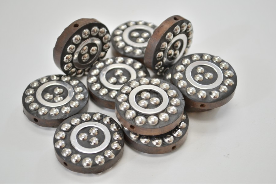 It is handmade of silver plated metal wood beads. Nice additional to craft or jewelry making.