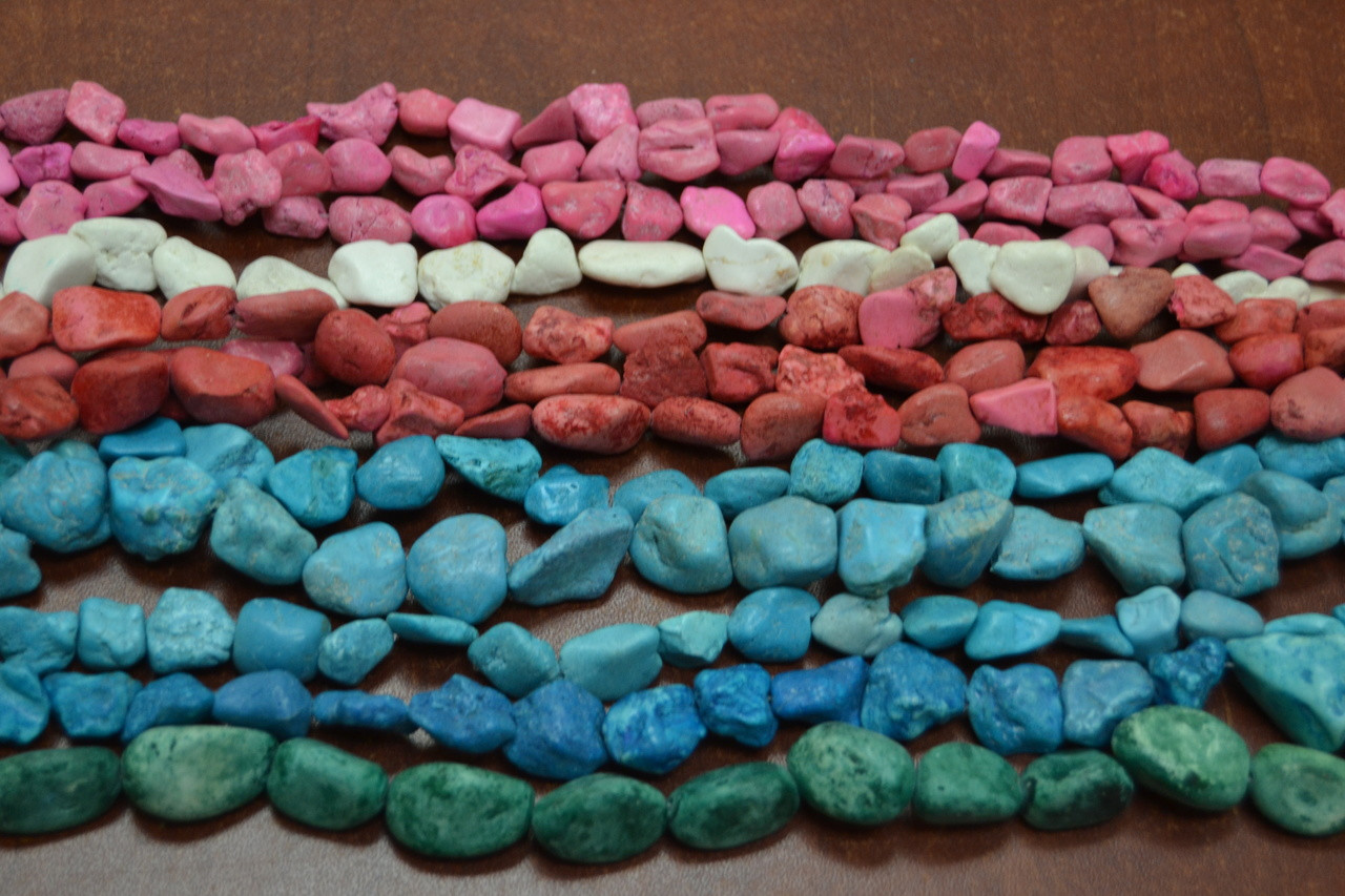 The size is 1/4" - 1/2" length x 2mm hole. It is 12 strands in a bag.