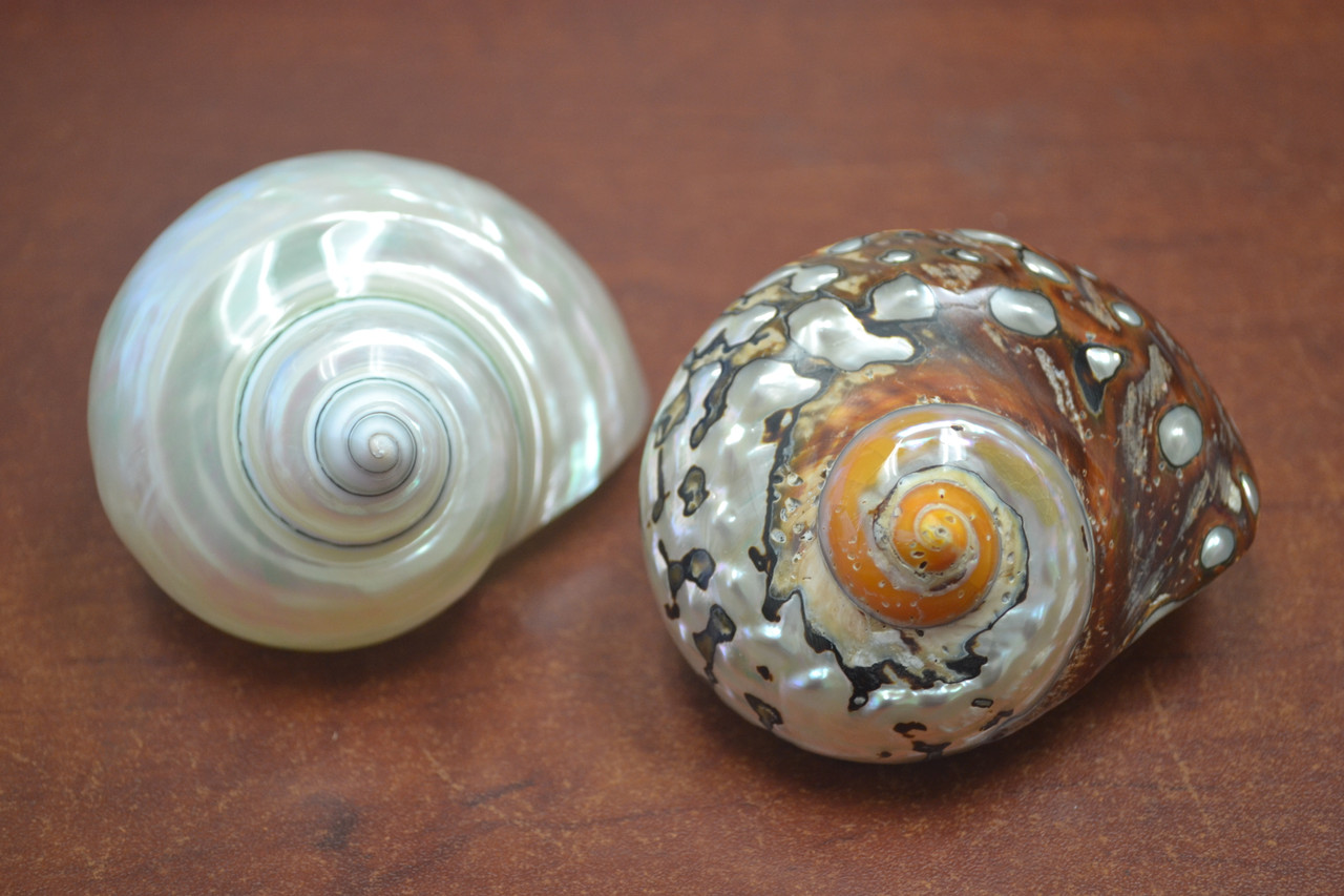 2 Pcs White & Sarmaticus Pearl Jade Turbo Hermit Crab Shell