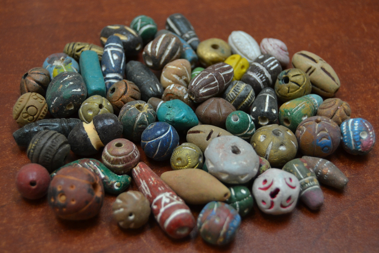 These are carved by hand and made out of clay. Nice additional to your beading craft.