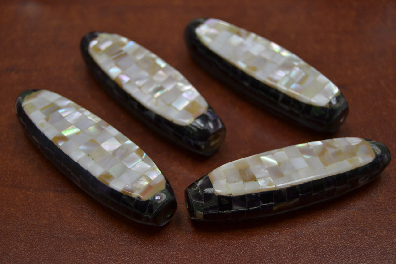 - 4 Pcs Oyster & Pearl Shell Mosaic Loose Tube Beads 3"