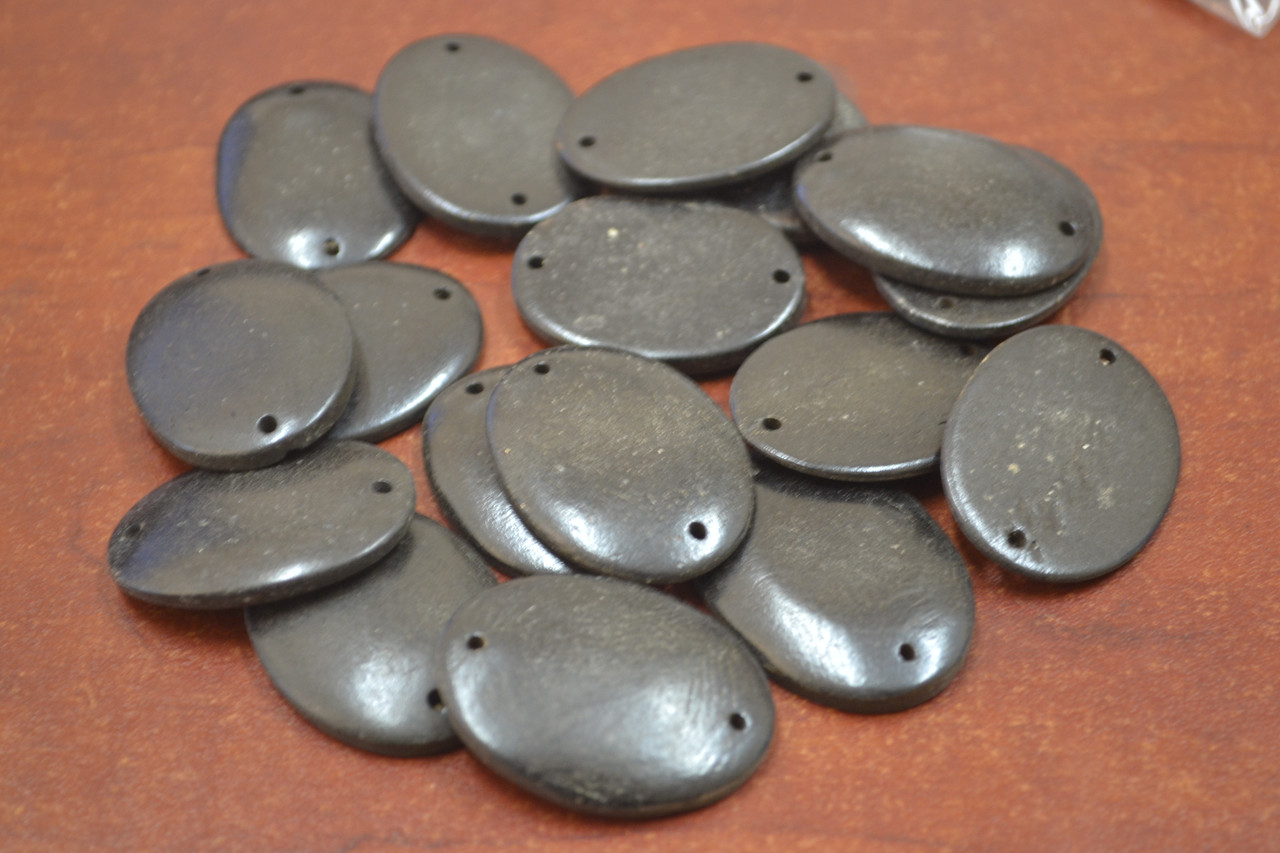 These are beautiful handmade bone buttons. It is made out of water buffalo bones and carved into a button shape. Nice addition to your clothes making.