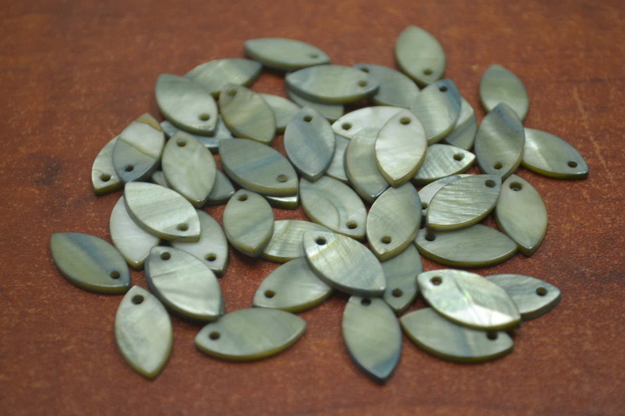 These are carved out of mother of pear shell. It is water dyed. Nice additional to your jewelry making.