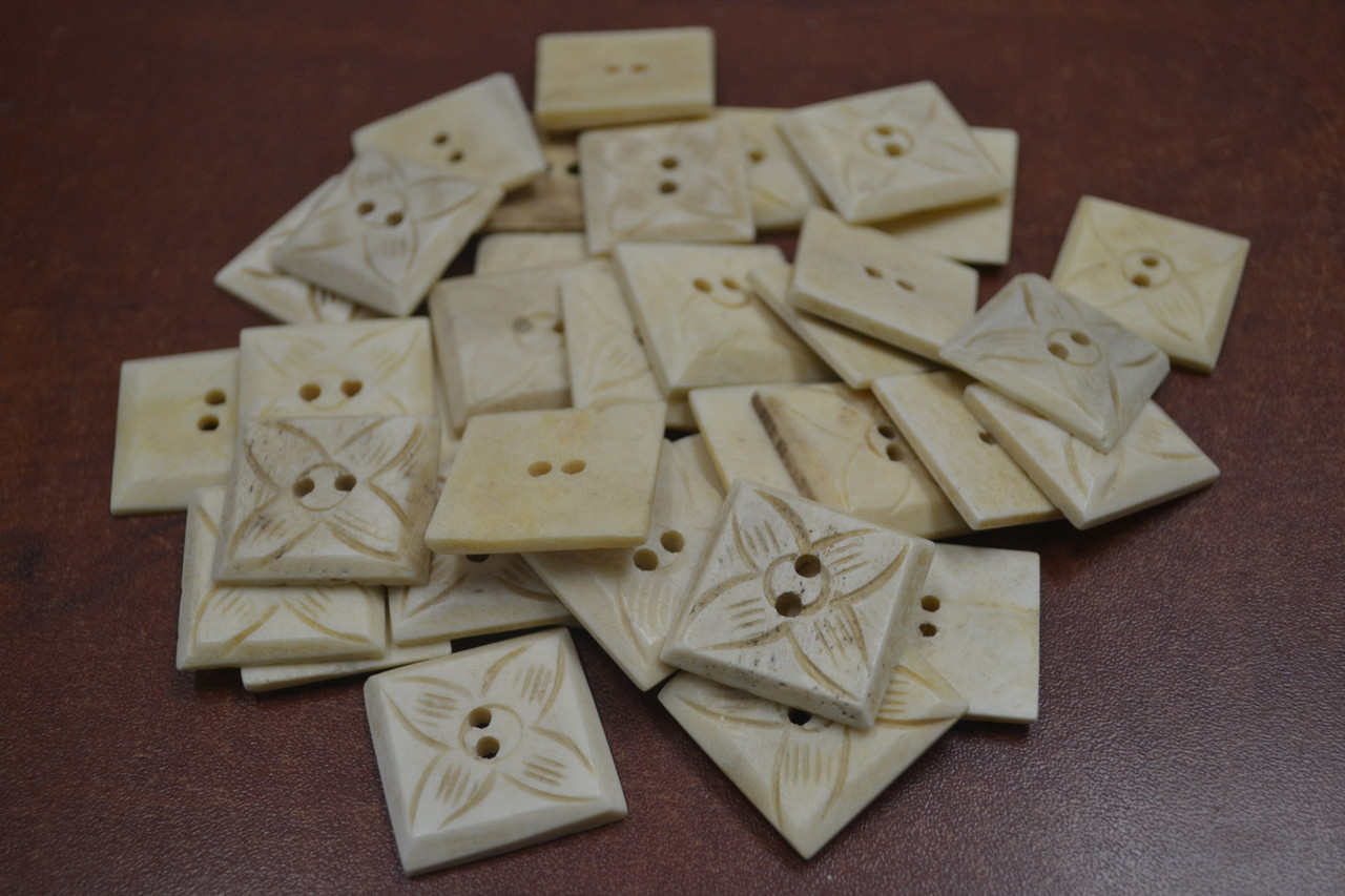 - 50 Pcs Flower Square Brown Buffalo Bone Sewing Buttons 1"