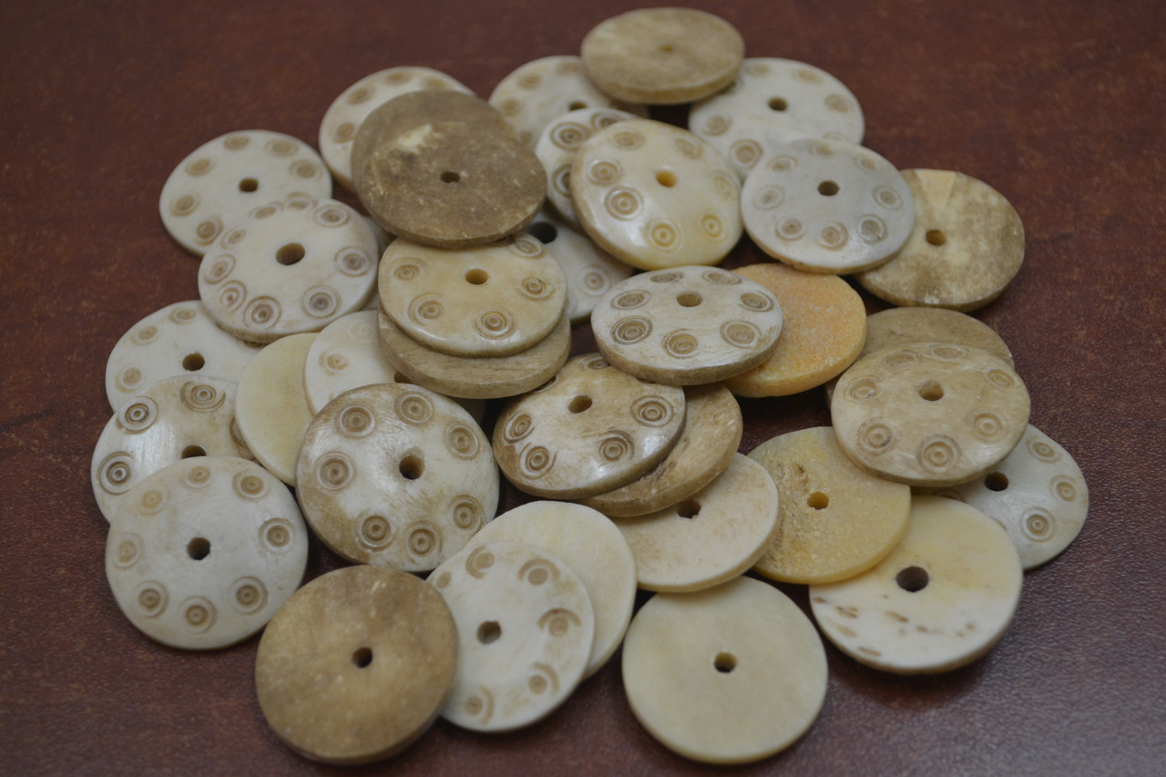 These are beautiful handmade bone buttons. It is made out of water buffalo bones and carved into button shape. Nice additional to your clothes making.