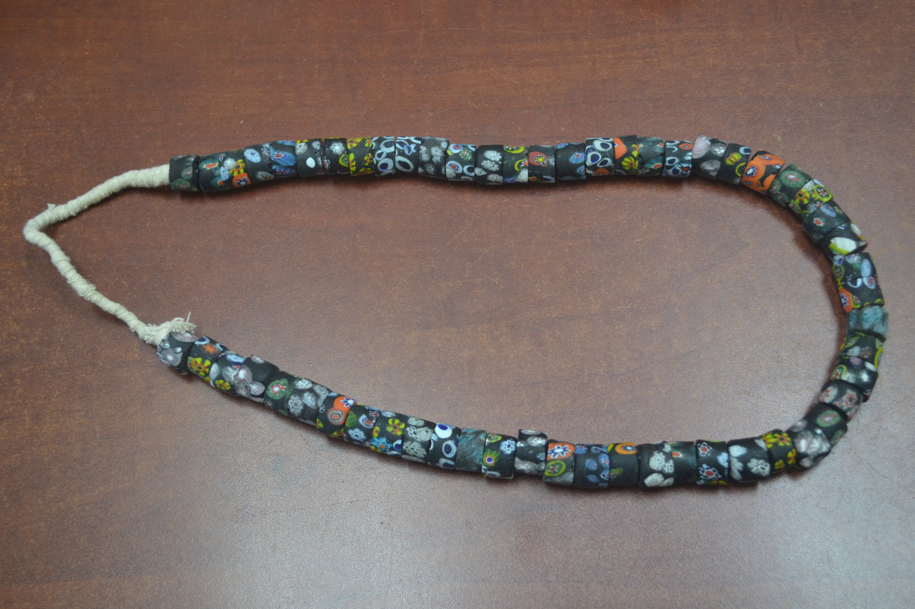 - 55 Pcs Handmade Black Stripe Africa Old Glass Beading Beads