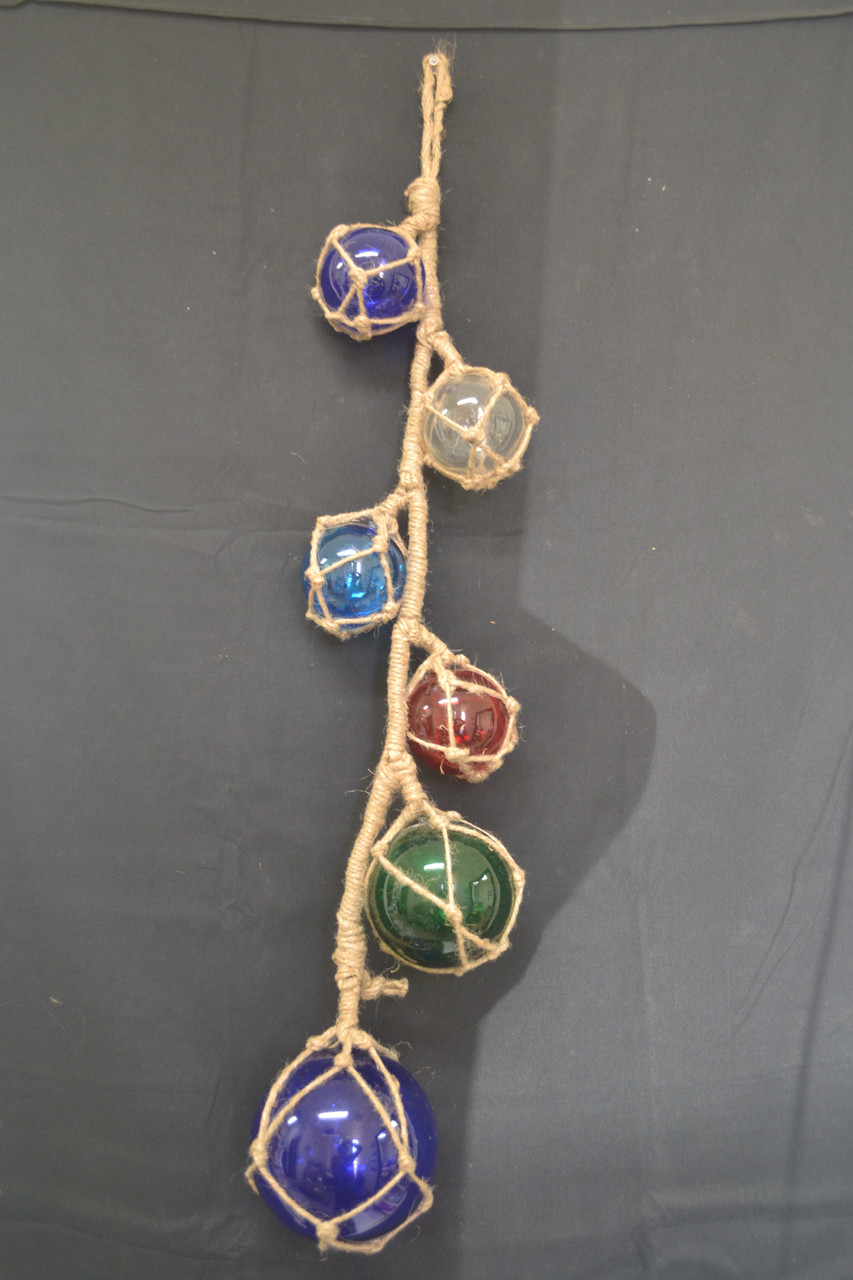 - 6 Pcs Assort Color Reproduction Glass Float Fishing Balls Buoy 34"