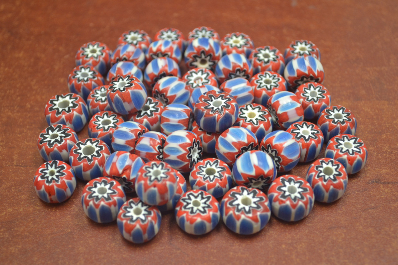 - 60 Pcs Handmade Blue Stripe Chevron Glass Beads