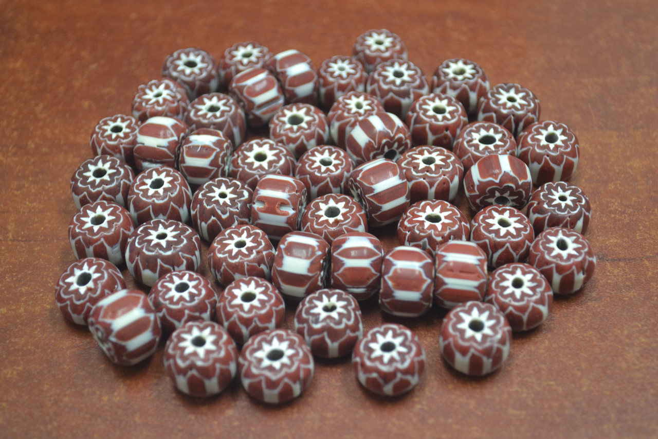 - 80 Pcs Handmade Brown Stripe Chevron Glass Beads
