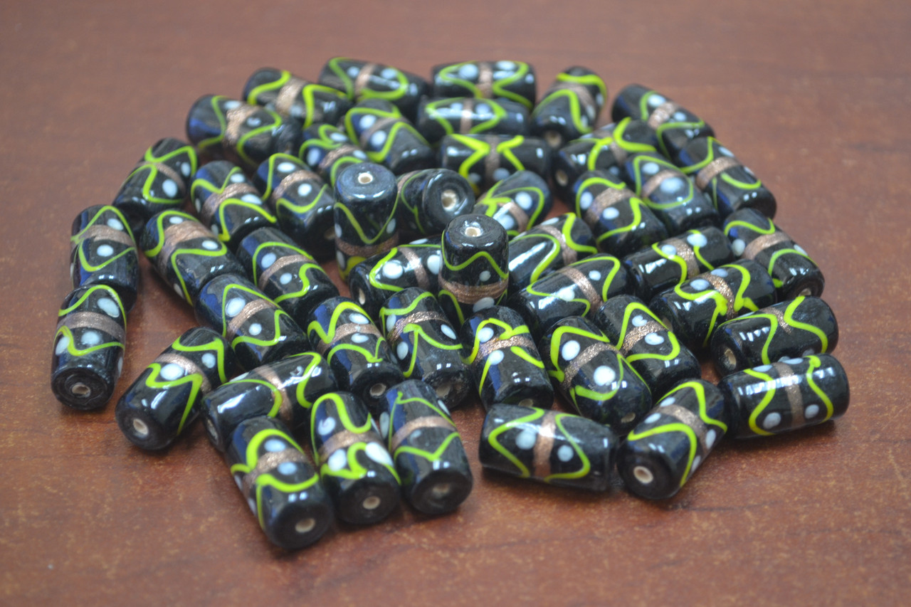 - 90 Pcs Handmade Fancy Green Stripe Glass Tube Beading Beads