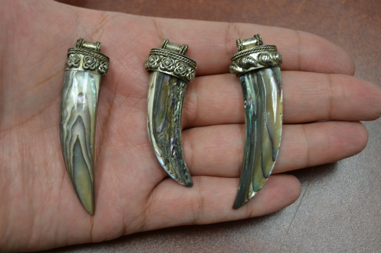 It is handmade shell pendant. The abalone shell is capped with brass. Nice additional to your jewelry craft.