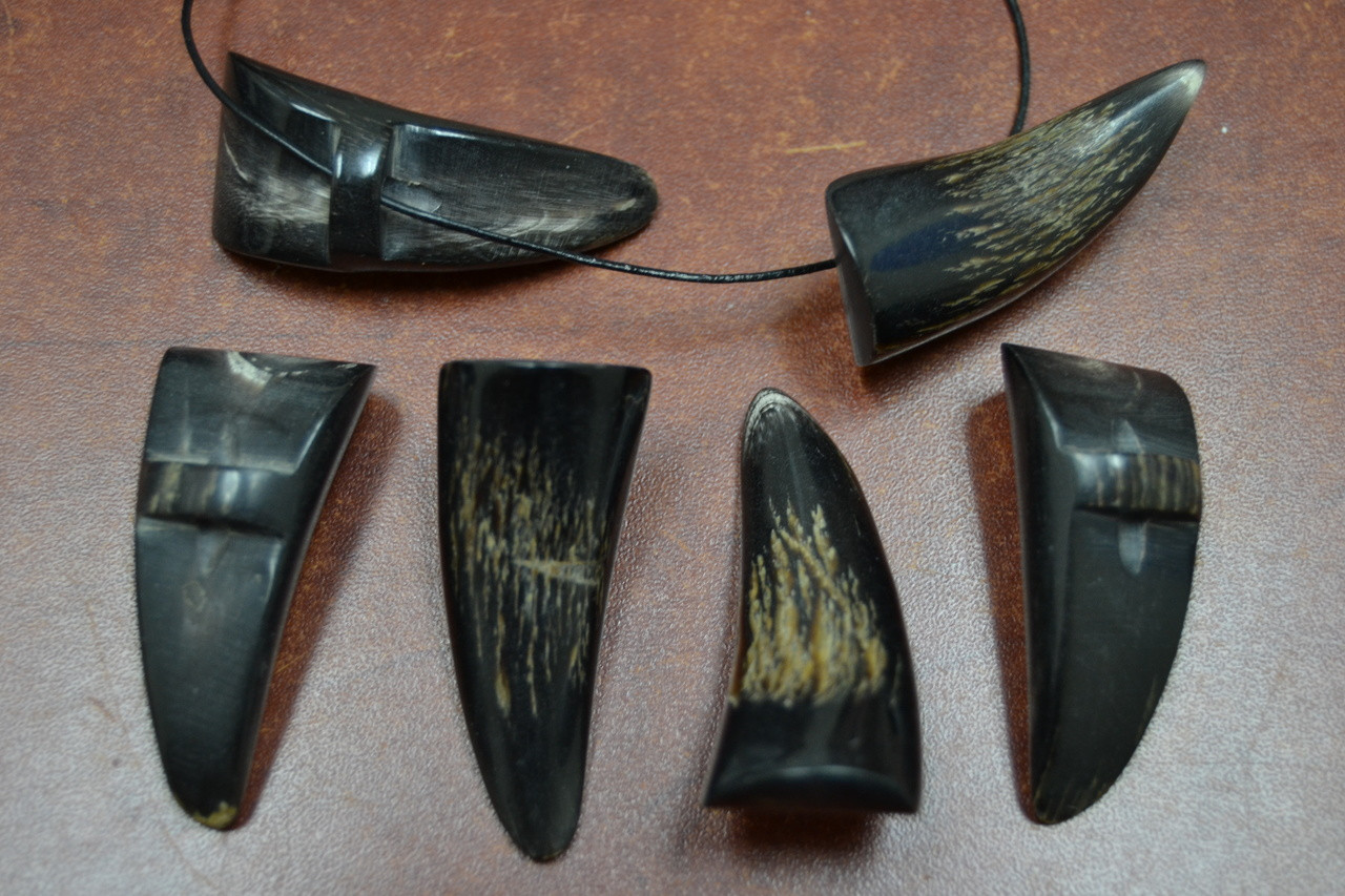 It is carved out of buffalo horn. Nice additional to your jewelry collection.
