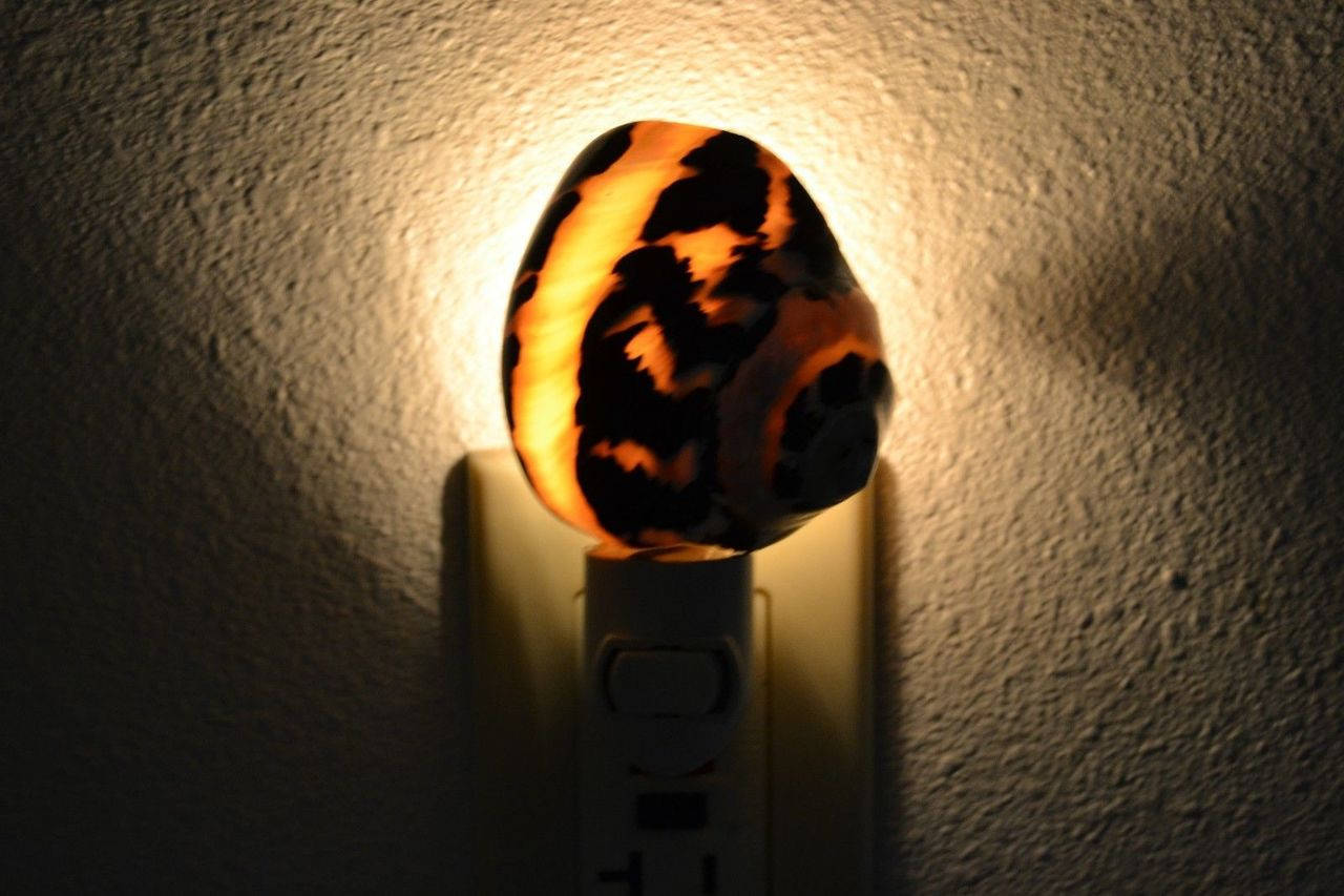 This is a beautiful black pica tubro seashell nightlight. This is real made from natural shell. Just plug into to the wall socket and see it glow. It can be used for your kitchen or bathroom. Also, a nice addition to your seashell collection. The sizes and markings will vary slightly, as this is produced by nature. You will receive similar one.