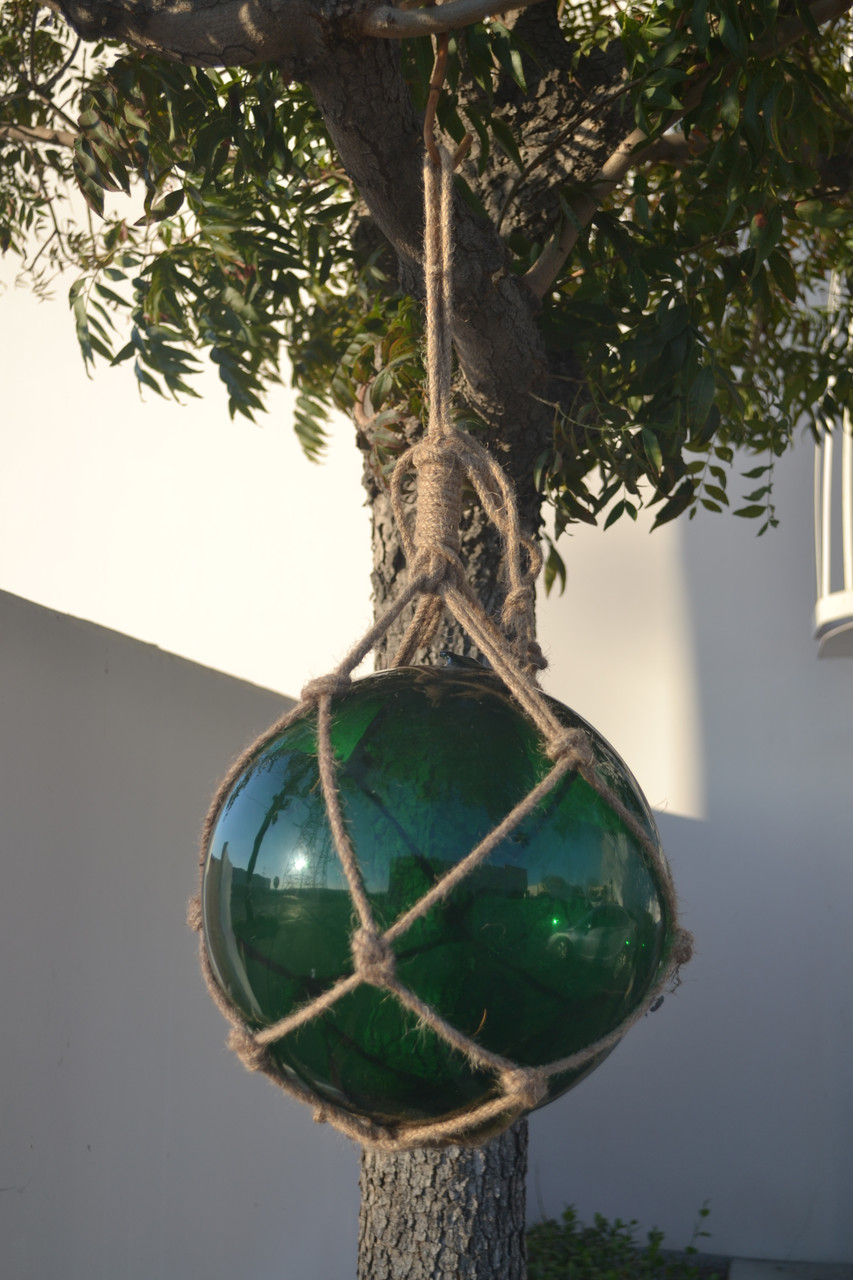 It is hand-blown glass with a mark on the underside. There are some bubbles in the glass, and the color may vary.