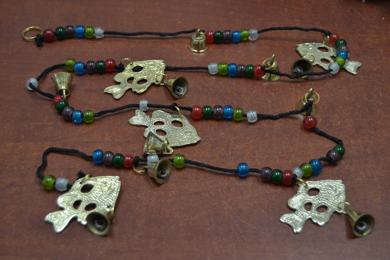 - Handmade Fish Brass Metal Bells Glass Beads String 45"