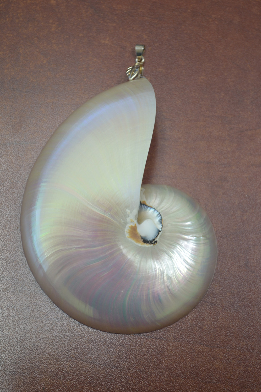 It is beautiful white pearl nautilus pendant. Nice additional to your seashell collection.
