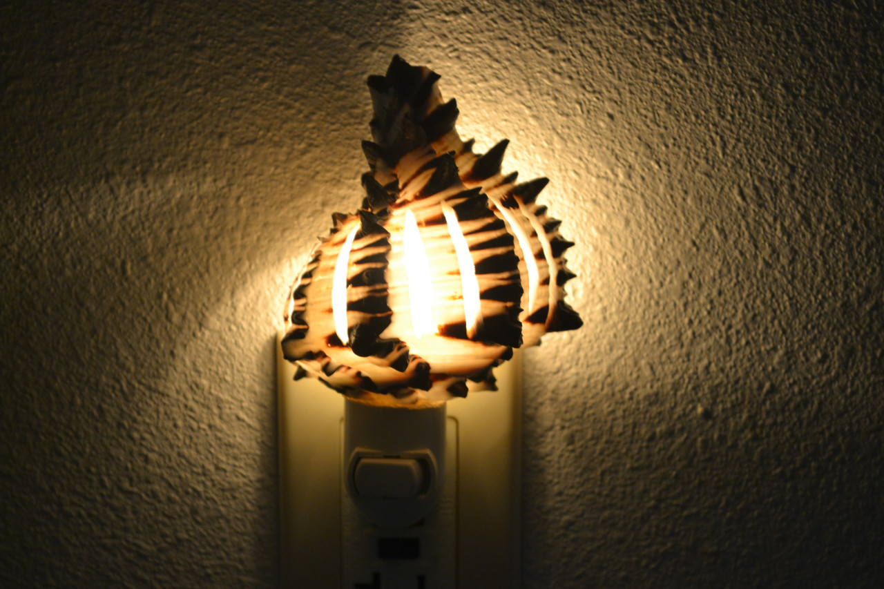This is a beautiful murex seashell nightlight. This is real made from natural shell. Just plug into the wall socket and see it glow. It can be used for your kitchen or bathroom. Also, a nice addition to your seashell collection. The sizes and markings will vary slightly, as this is produced by nature.
