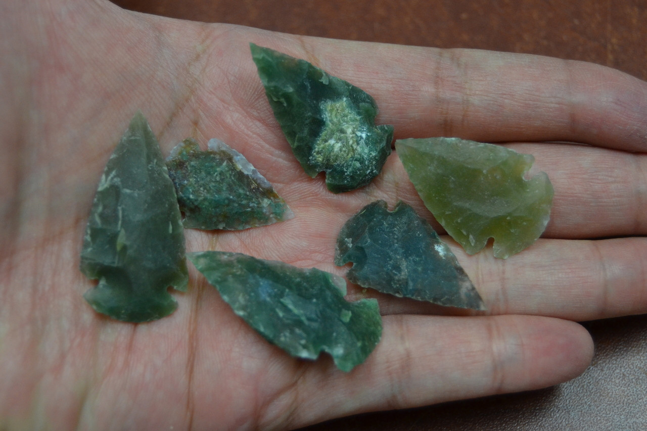 - Small Green Agate Stone Spearpoint Arrowheads 1" - 1 1/2"
