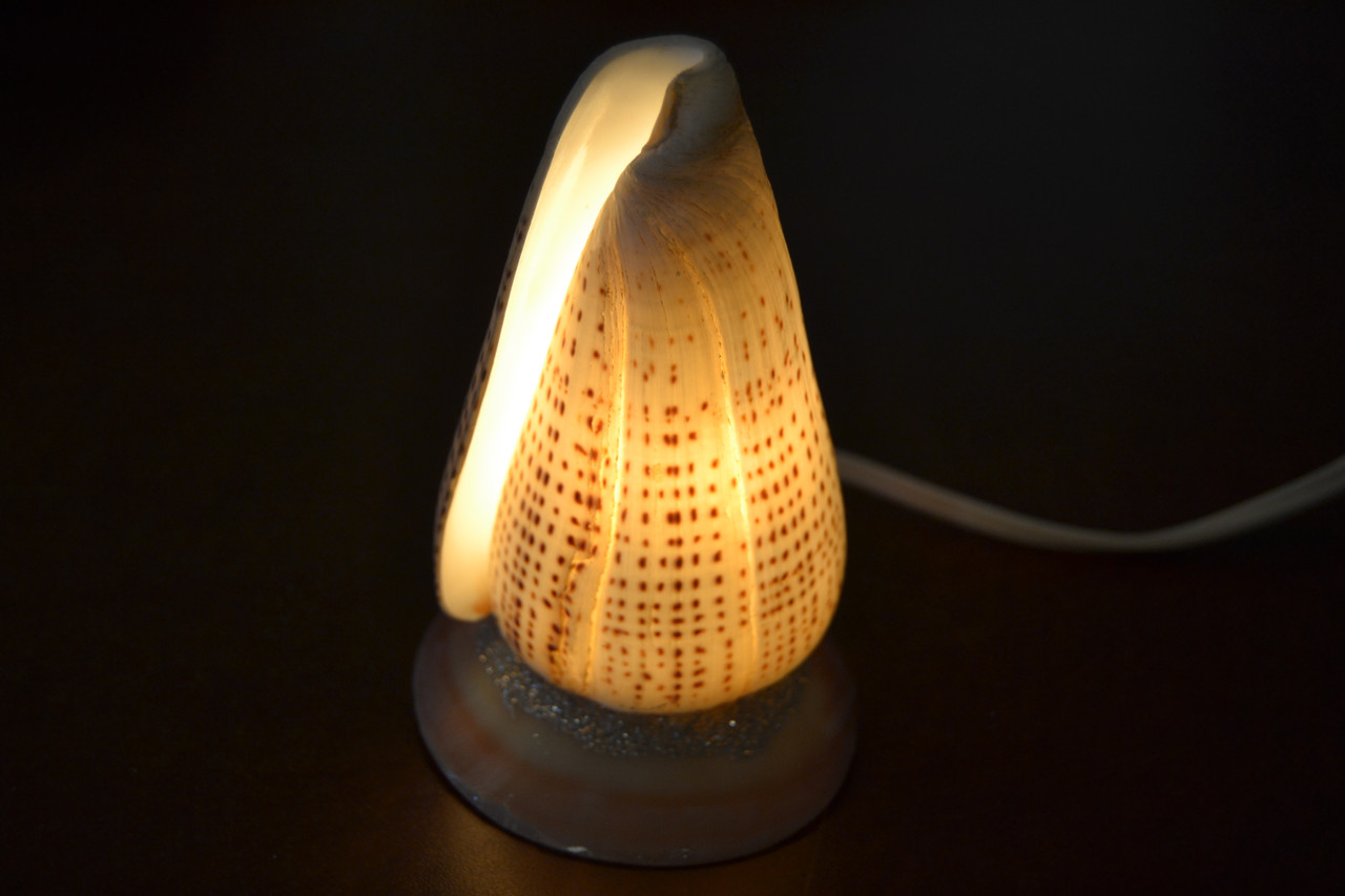 It is a beautiful table lamp. It is a real seashell and might have slight markings. Nice to be used for bedroom, kitchen, or bathroom decoration.