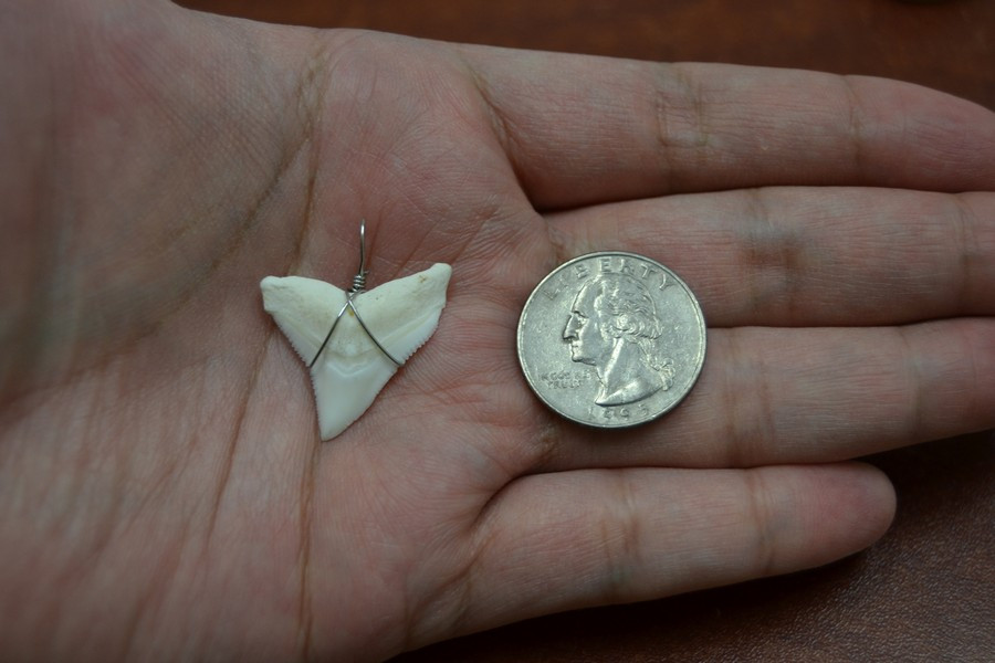 - White Bull Shark Teeth Tooth Wire Wrapped Pendant
