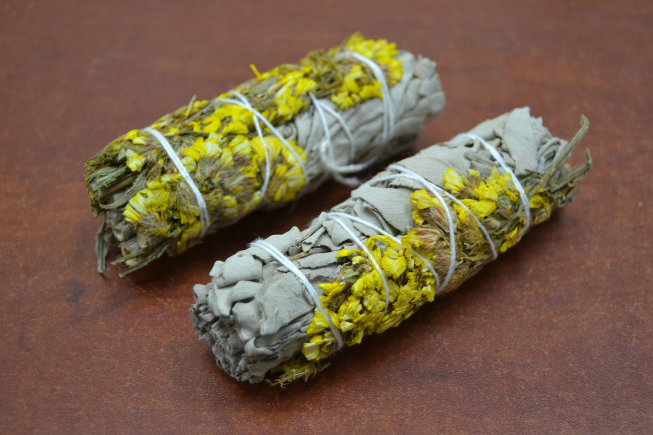 - Yellow Sinuata California White Sage Smudge Bundle 4"